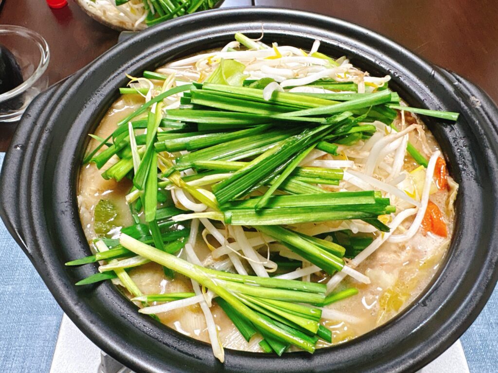 豚骨ベース×ニラなので、もつ鍋みたいな味わいでbグッ