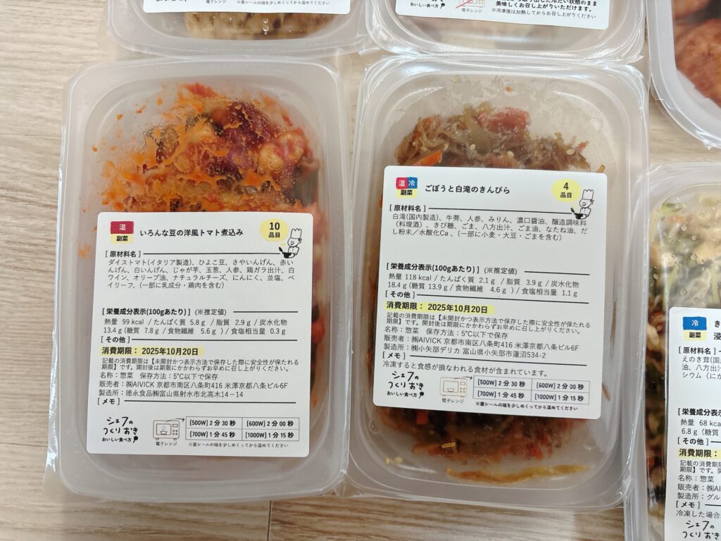 先週のお惣菜宅配サービス(シェフの無添つくりおき)