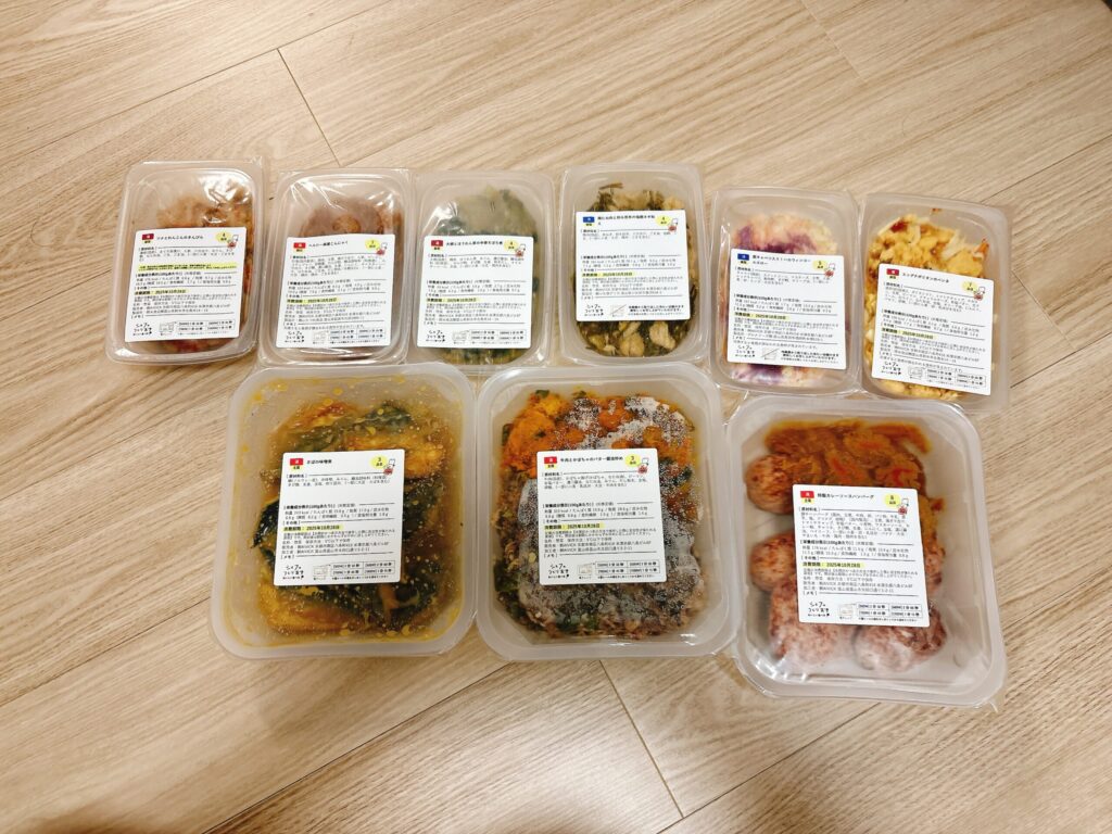 主菜3パック(大)、副菜6パック(小)で届きました♪