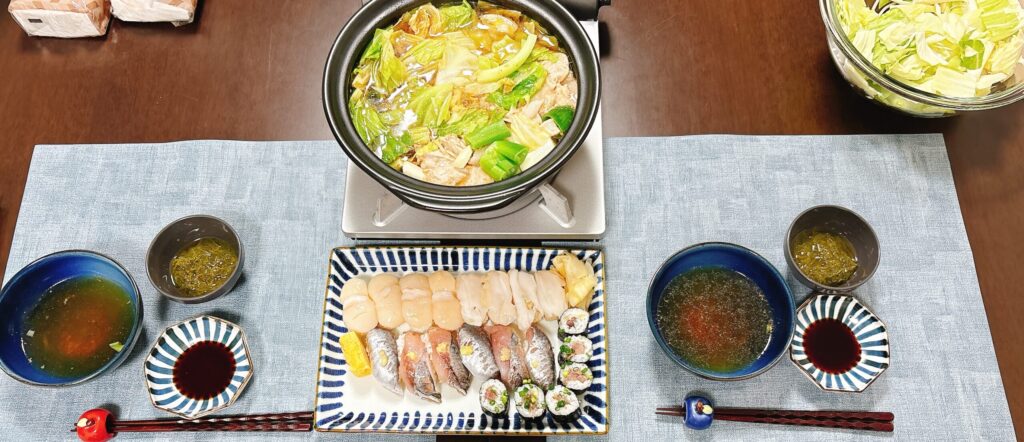 最近マジデ週末は、土曜日は鍋、日曜日はお寿司(スーパー)と